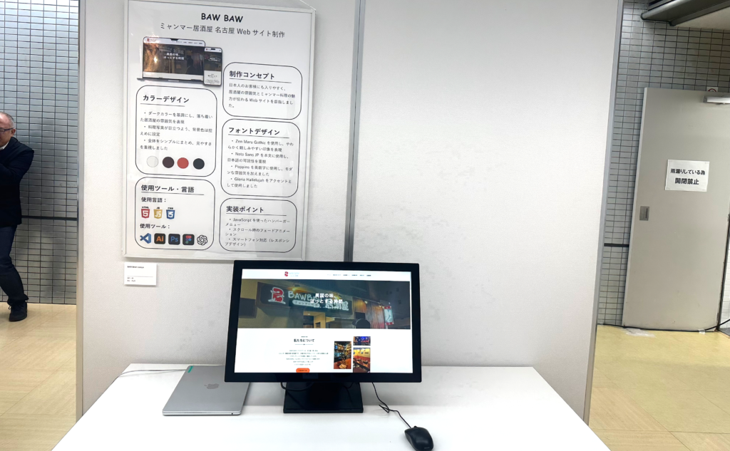 進級制作では「Baw Baw Izakaya」というミャンマー料理店のWebサイトを制作しました。